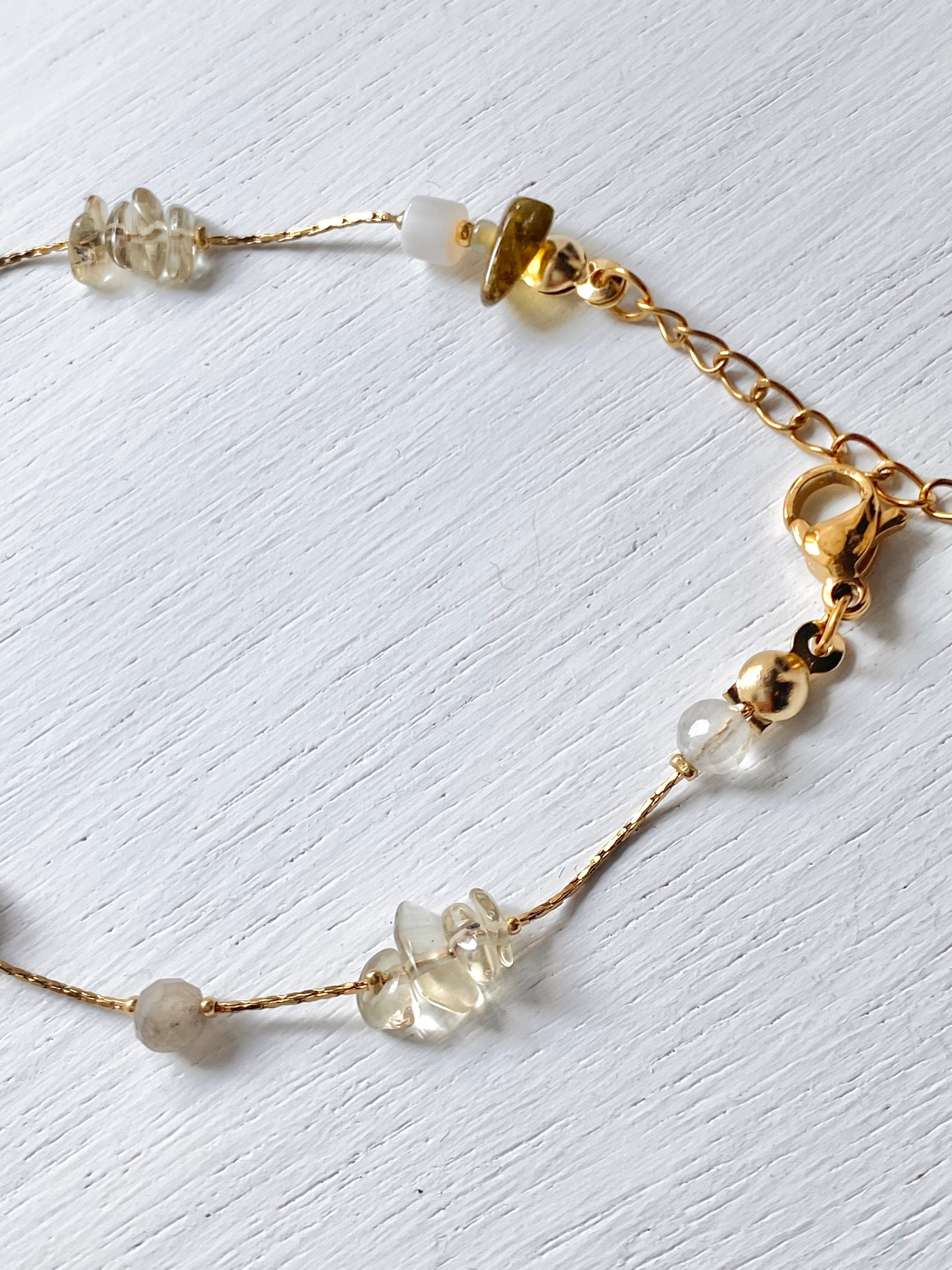 個性豊かな天然石を 一つ一つ繋ぎ合わせてブレスレットをつくりました。