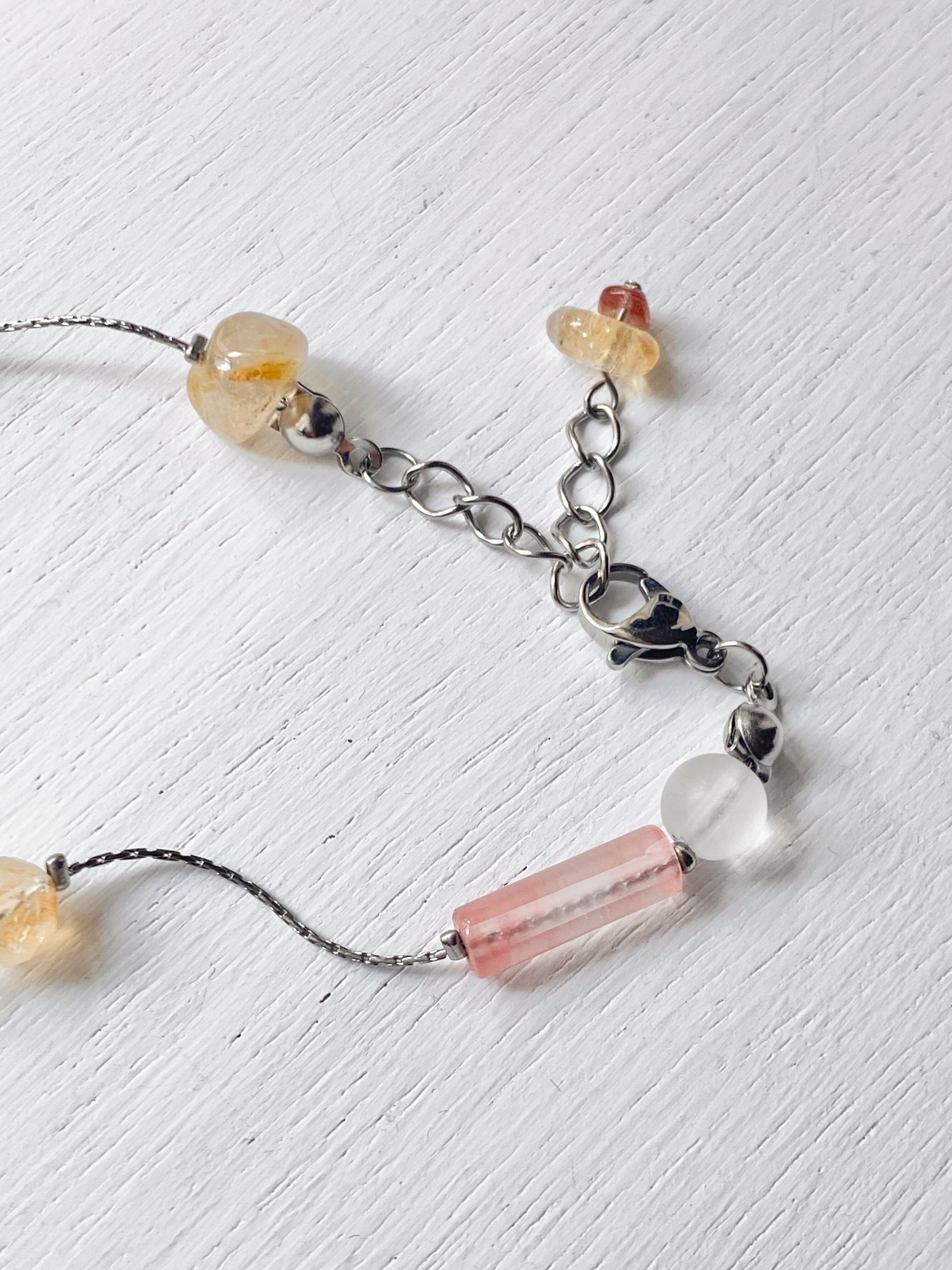 ⚫︎素材:ステンレス、チェリークォーツ、フロストクォーツ、ルチルクォーツ、シトリン、淡水パール、モルガナイト