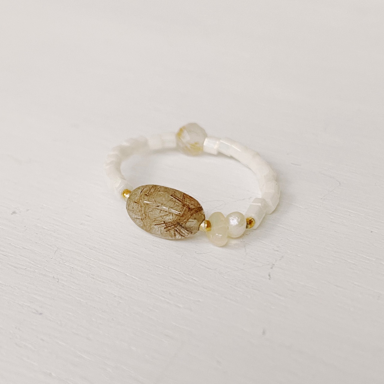 個性豊かな天然石とビーズを 一つ一つ繋ぎ合わせて指輪をつくりました。