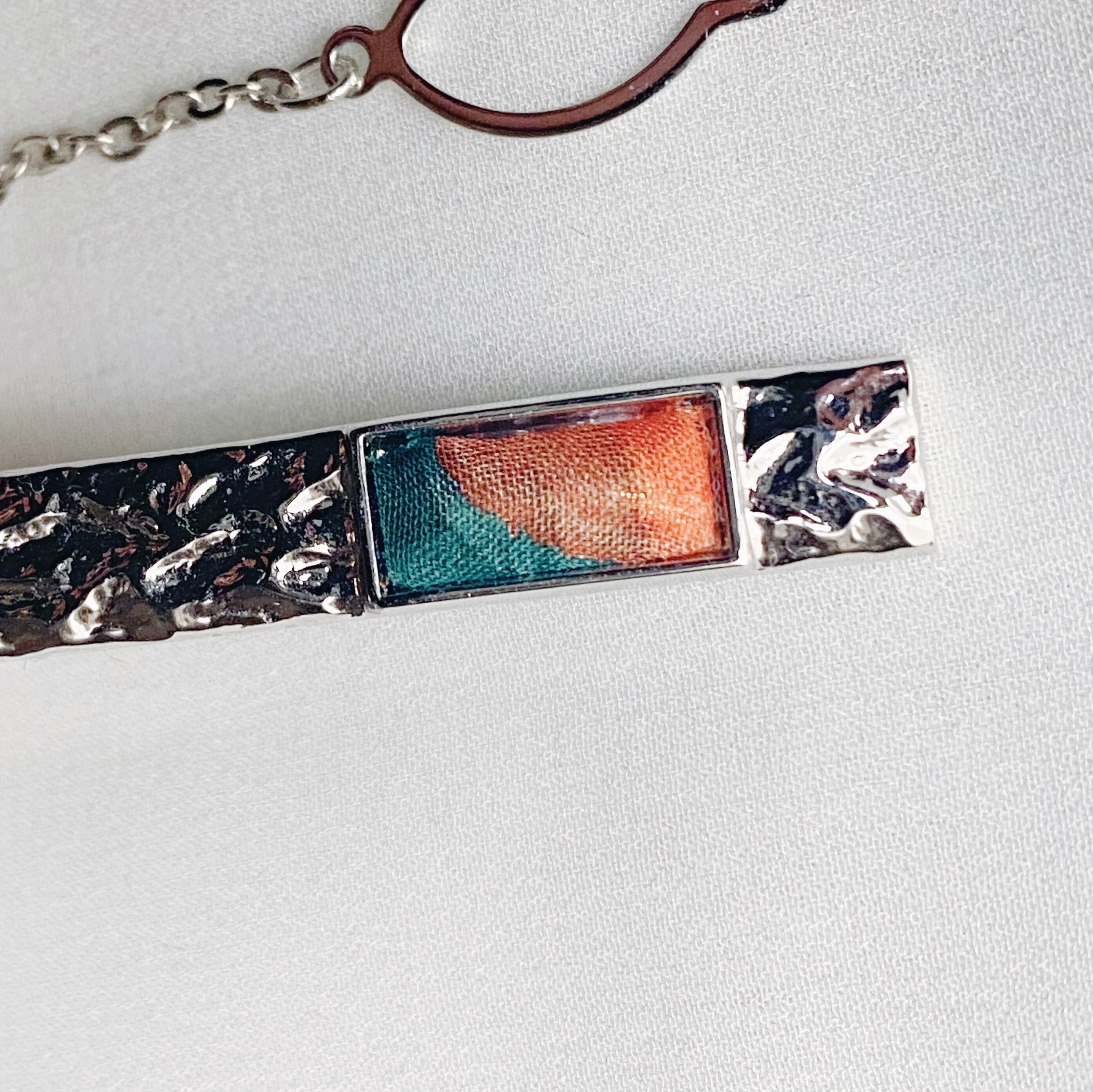 ひとつひとつ手作業で彩色した絹布をつかったネクタイピンです。