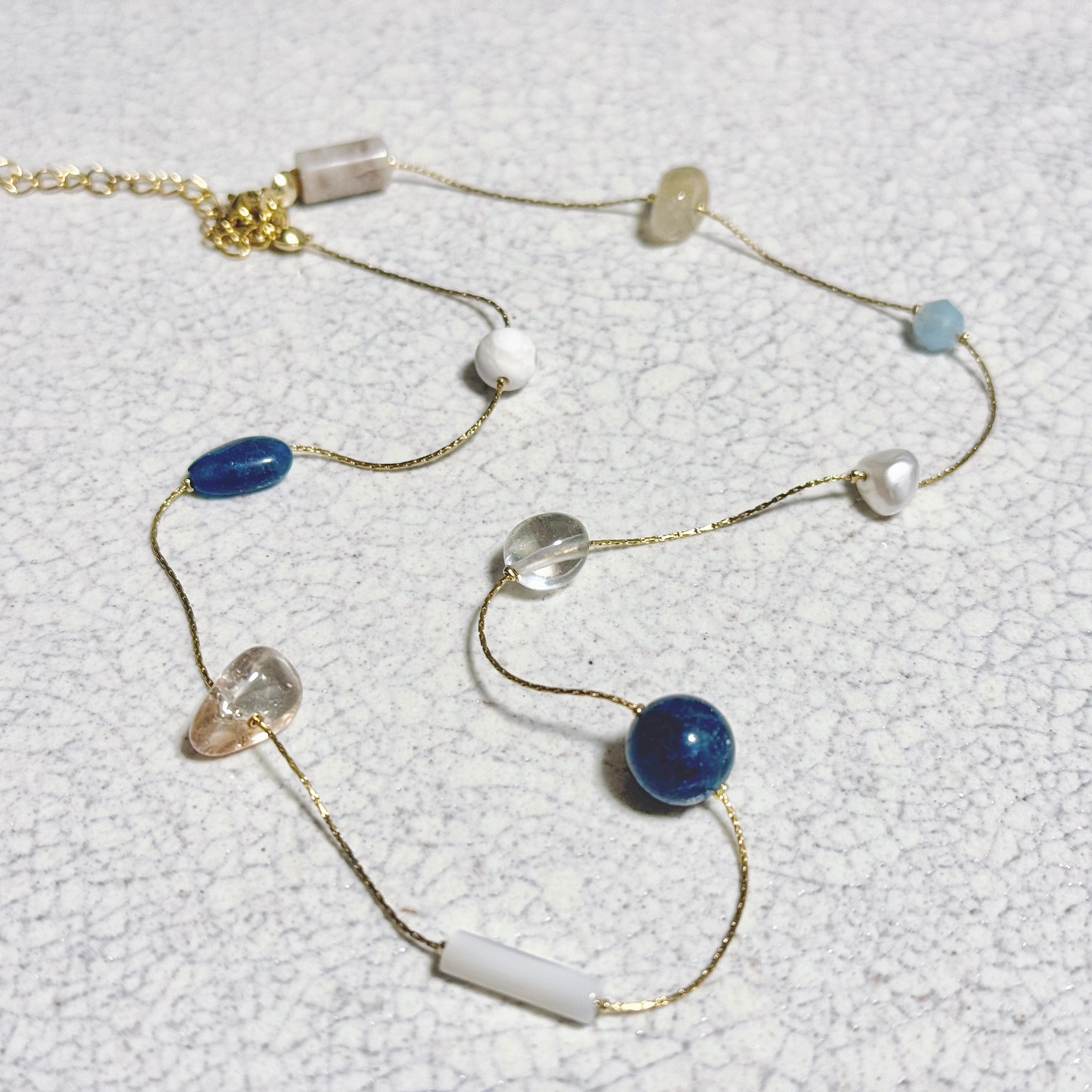 ⚫︎素材:ステンレス、ブルーアパタイト、ガーデンクォーツ、貝パール、ブラウントパーズ、マザーオブパール、ハウライト、ルチルクォーツ、シルバーリーフジャスパー、アクアマリン